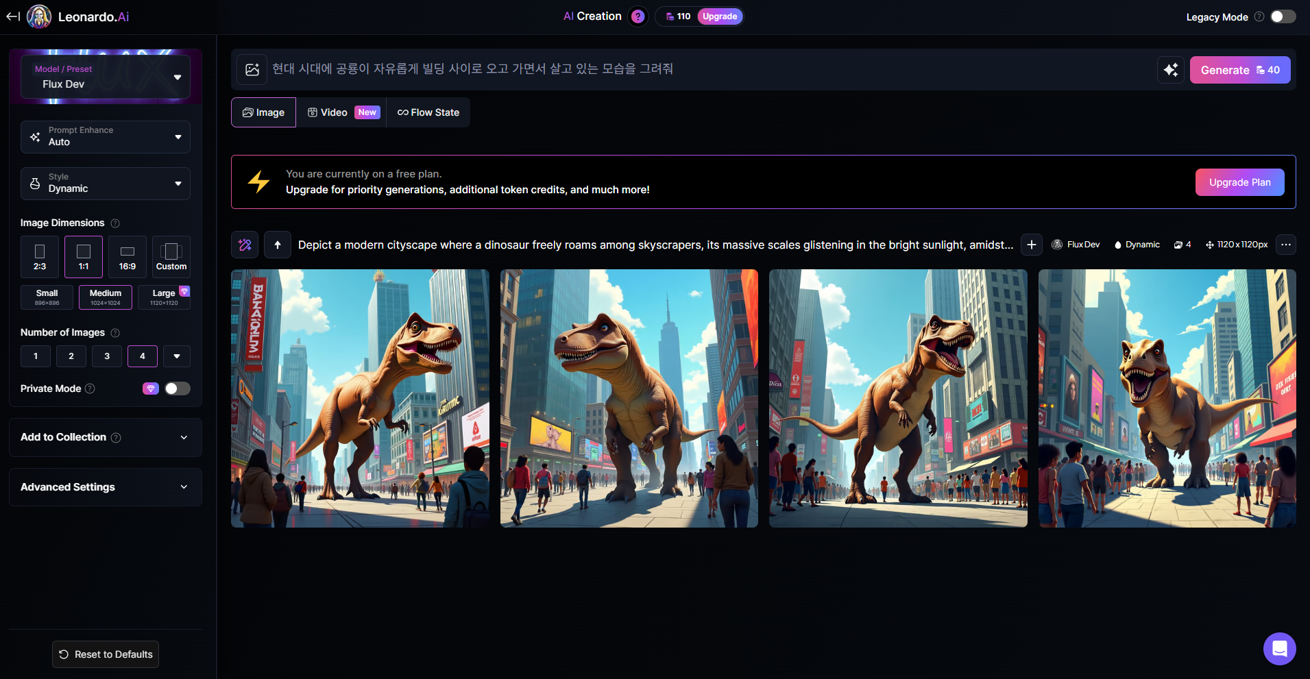 - 한글 프롬프트 인식은 아직 미흡함