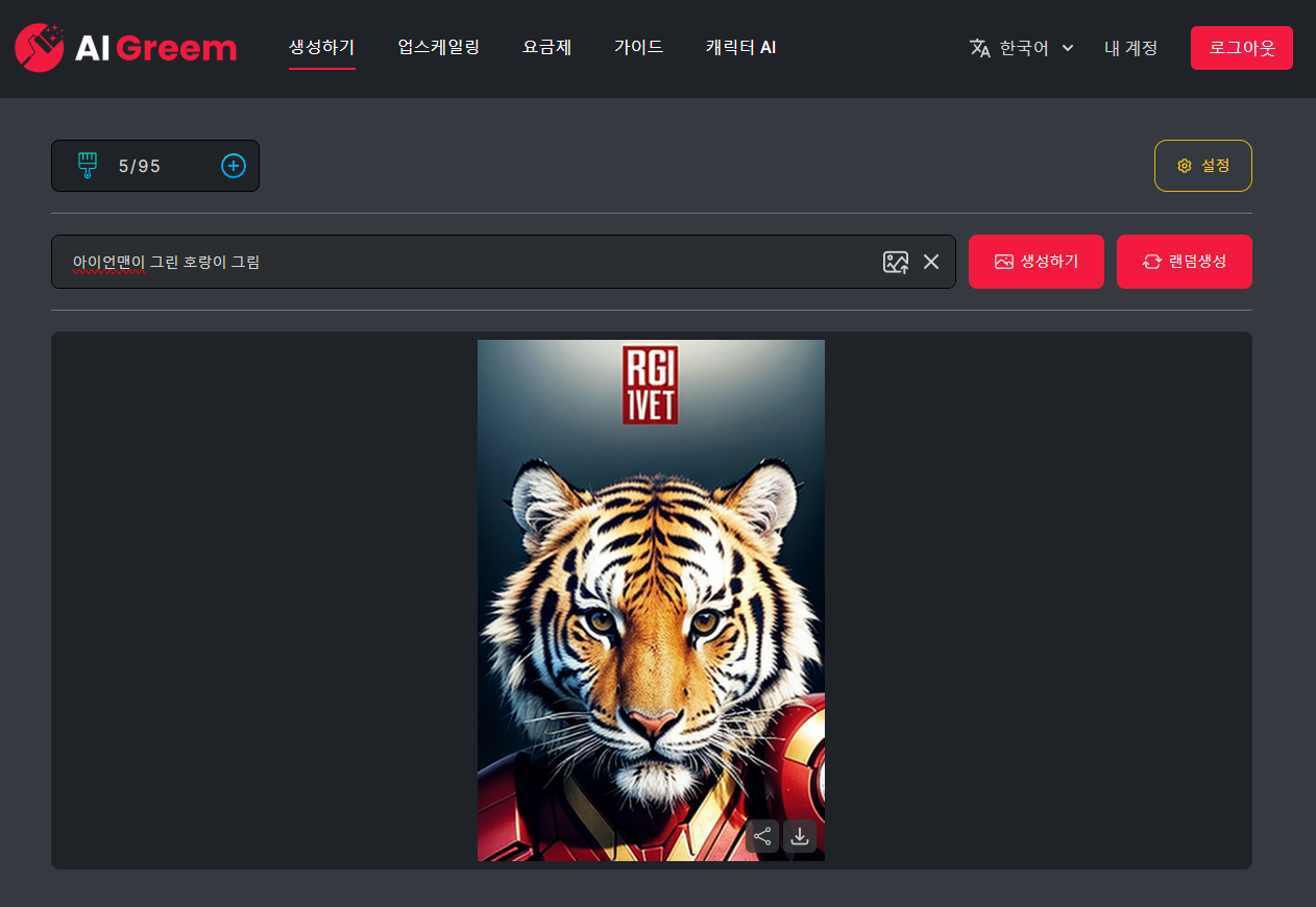 수십 초 내외로 이미지가 생성되며, 필요시 AI 리터칭 기능으로 특정 부분을 재생성하거나 보정할 수 있습니다. - 결과 다운로드